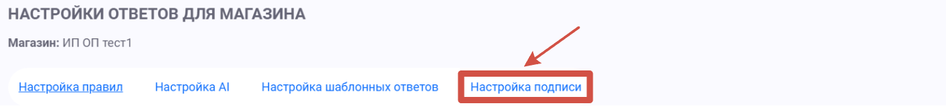 Укажите подпись, которая будет отображаться в конце каждого ответа. Для ответов, сгенерированных AI подпись добавится автоматически. Для ответов по шаблону, подпись вставится в подстановку {signature}. Затем нажмите сохранить: