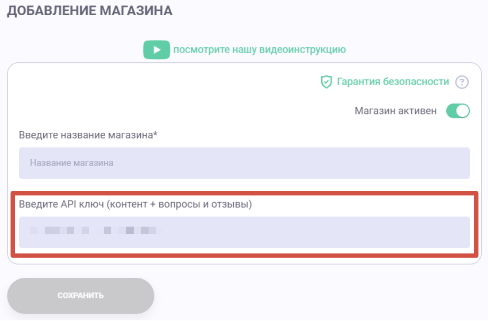 Вставляем скопированный токен в соответствующее поле в сервисе. Нажимаем кнопку сохранить: