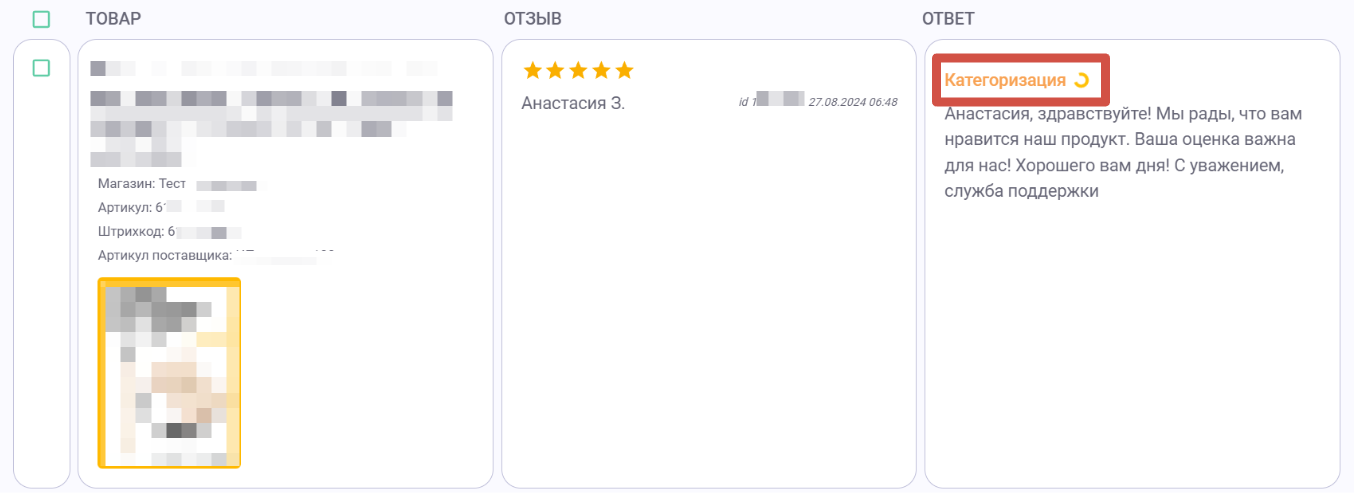 Категоризация. Если вы нажмете “обновить вариант ответа” сервис сгенерирует для вас новый ответ: