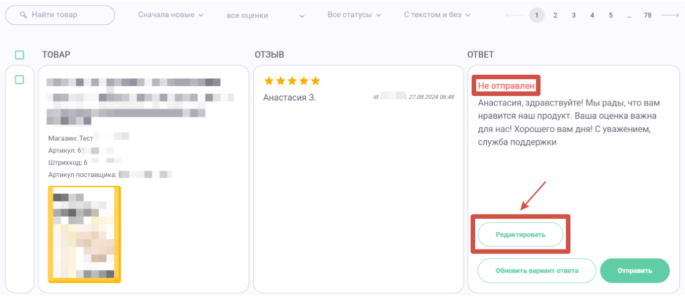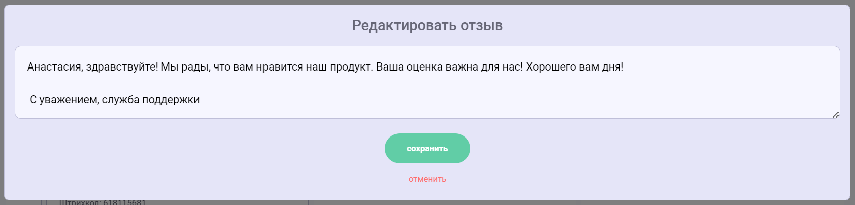 Ответ на отзыв не отправлен. Вы можете отредактировать ответ, нажав “редактировать”, обновить вариант ответа или отправить его.