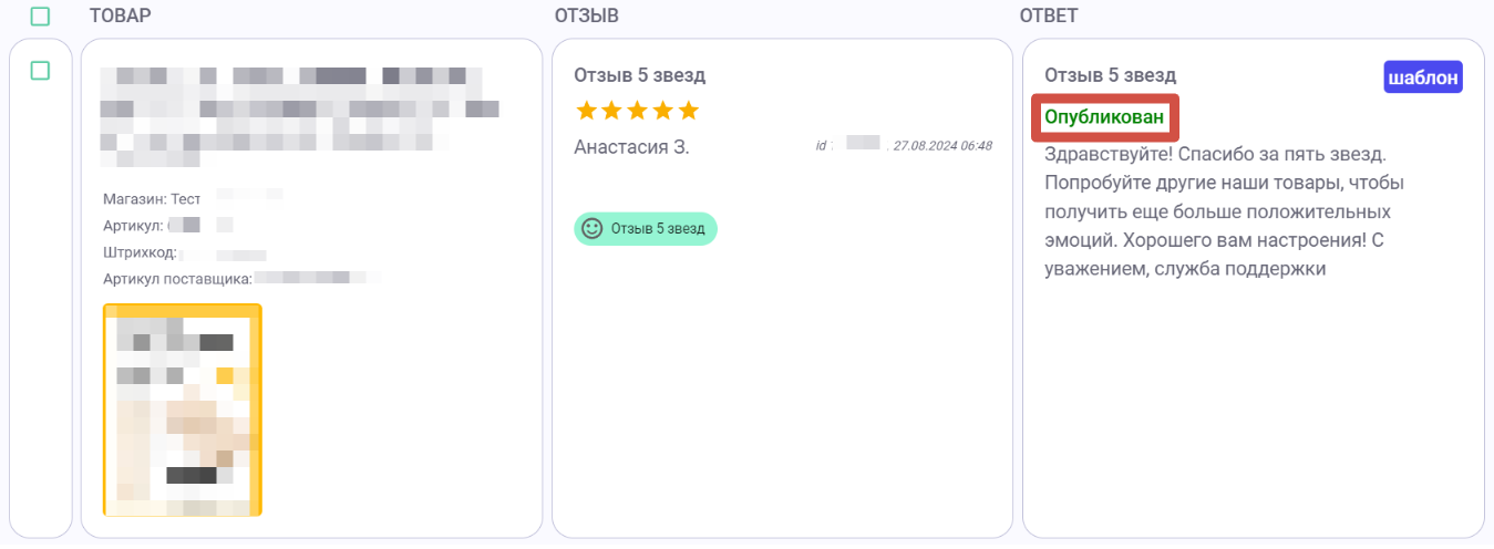 Отзыв опубликован. Далее вы можете нажать “опубликовать”, и отзыв будет опубликован: