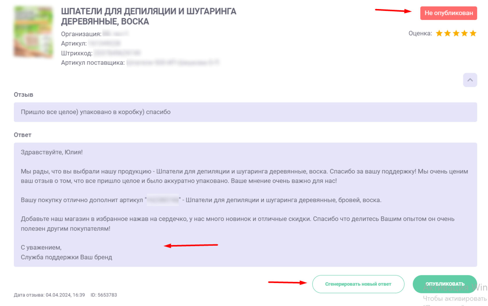 Вы можете сгенерировать новый ответ на отзыв нажав "Сгенерировать новый ответ" - списания за новую генерацию не происходит, тарифицируются только ответы которые были опубликованы.